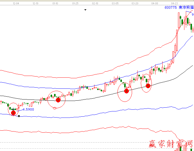 如上圖南京熊貓處于上升的通道中,當股價突破贏家極反通道生命線后,每次回調到生命線的位置就是波段性的買點。