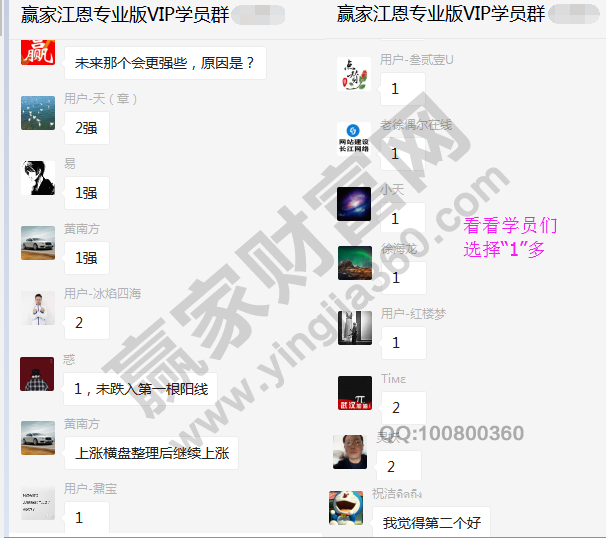 看到學(xué)員們紛紛表達(dá)自己的觀點(diǎn),天道老師想傳遞的技術(shù)信號也更深入到學(xué)員的思維中。兩種形態(tài)均看漲,但這兩者相比,孰強(qiáng)孰弱?再延伸些講:上漲期是擴(kuò)散好,還是收斂好。在思考層面上,學(xué)員除了從術(shù)的角度來推演判斷,更結(jié)合贏家王老師所講的陰陽消戰(zhàn)法及16字操盤真言來理解,不得不說贏家的專業(yè)版學(xué)員真的都非常優(yōu)秀。最后,分享一張學(xué)員易的觀點(diǎn)分析圖,從中你也會得到自己想要的答案!