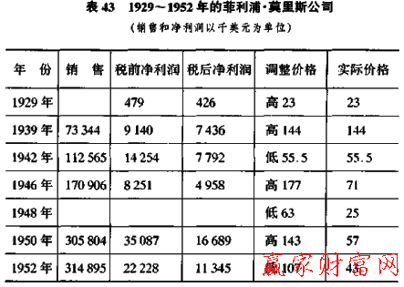 在1929年至1939年間,當(dāng)幾乎所有公司利潤(rùn)下降的同時(shí),菲利浦公司的稅前利潤(rùn)增長(zhǎng)了20倍。這是企業(yè)的巨大成功。7年以后,公司凈利潤(rùn)明顯下降,但市場(chǎng)上投資熱情依然高漲。1946年股市價(jià)格高達(dá)企業(yè)前盈利的27倍,是當(dāng)年盈利的3.5倍。從那個(gè)水平起到1948年初,股價(jià)下跌了2/3,比其他領(lǐng)導(dǎo)股下跌幅度大得多。這明顯是投機(jī)者對(duì)公司變化反應(yīng)滯后的表現(xiàn)。隨后公司的銷(xiāo)售額和利潤(rùn)均有大幅增加,但有意義的是,1950年至1953年的牛市高價(jià)并沒(méi)有超過(guò)1938年至1946年的最高點(diǎn)。