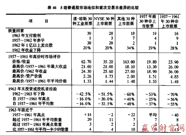考慮到前述1962年衰退期間新普通股的社會(huì)購買者的經(jīng)驗(yàn),我認(rèn)為所表現(xiàn)出的結(jié)果確實(shí)是可怕的(實(shí)際上真正結(jié)果或許比我所發(fā)生販的更壞,因?yàn)闃?biāo)準(zhǔn).普爾將那樣的證券選擇在它的股票指南里,它或許假定這些選擇比那些被省略的更好)。讀者最好花費(fèi)一些時(shí)間檢查在股票市場(chǎng)所經(jīng)歷的交叉選擇,它提供了可能是最有力的證據(jù):小企業(yè)出售新普通股構(gòu)成了最沒有吸引力的“投資”(這個(gè)詞完全是適用的)形式和最危險(xiǎn)的投機(jī)中介。