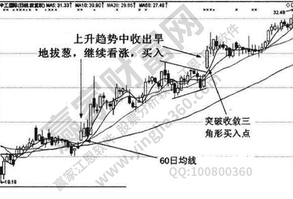 在均線的回壓下,個股快速下跌。隨著下跌接近最低點,上漲和拉動出現。跌幅越來越大的成交成交量伴隨著跌幅越來越小的負線。當萎縮的陽線超過了下跌的最后一個陰線空實體,也是成交最大的空實體時,在萎縮的最高點附近,陽線是短線的一個極好的入口點。