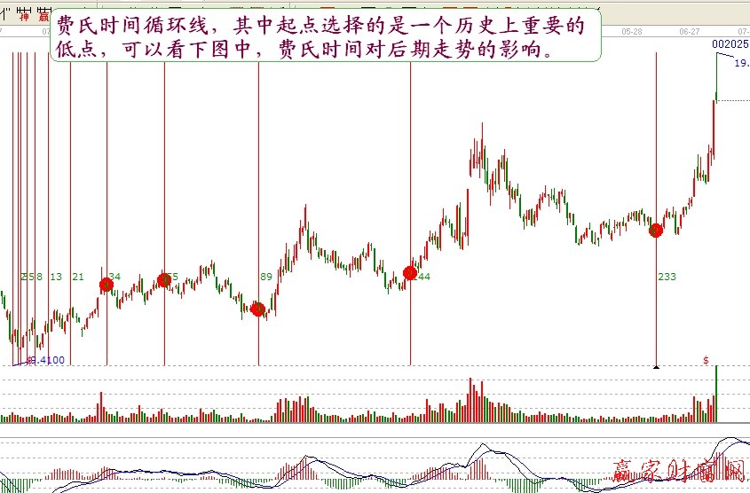 費(fèi)波納奇數(shù)列也就是常說的神奇數(shù)字,通過對(duì)前面的學(xué)習(xí),我們已經(jīng)知道神奇數(shù)字可以用以判斷股價(jià)的支撐阻力。而除此之外,神奇數(shù)字對(duì)股價(jià)時(shí)間周期上的影響也是非常大的,我們同樣可以利用神奇數(shù)字來計(jì)算時(shí)間上的轉(zhuǎn)折點(diǎn)。
