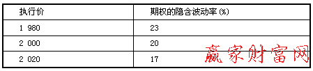 假設X指數期權存在反向波動率斜率,X指數期權的波動率均值為16%,各個執(zhí)行價的期權的隱含波動率見下表。