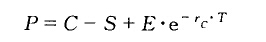 等式左邊為看跌期權價格而等式右邊為一個投資組合的價值。這個投資組合由一個看漲期權的多頭,一個股票的空頭以及買進一個票面價值為E的貼水債券組成。注意,在等式中,“+”表示買進或多頭,“一”表示賣出或空頭。