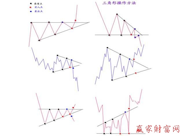 2股價(jià)變動(dòng)演變成對稱三角形時(shí),供需雙方得以在此獲得調(diào)節(jié),要買的人可用類似價(jià)格分天買進(jìn)較多的股票,要賣的人亦有時(shí)間將大筆額子分天出清,而價(jià)格相差也不多,等到實(shí)力派買進(jìn)或賣出足夠的額子時(shí),股價(jià)波動(dòng)再次興起,突破對稱三角形而上升或下跌。因此,對稱三角形完成后的上升或下跌是另一次極佳的買進(jìn)或賣出時(shí)機(jī)。