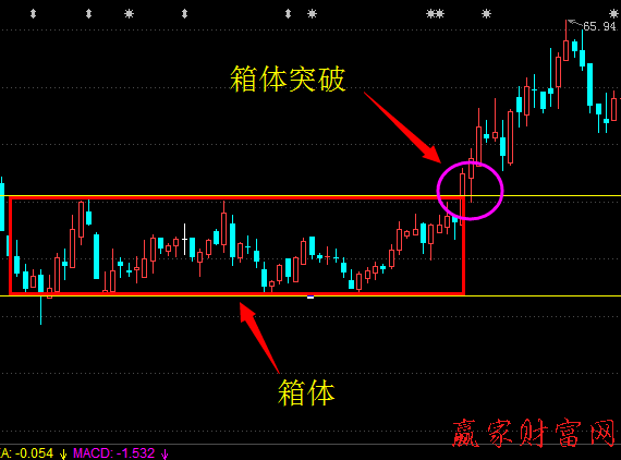 箱體理論的優勢在于不僅僅是以一天或幾天的K線數據為研究對象,而是以整個的所有K線數據作為研究對象,因而決策的信息量更大。箱體理論的精髓在于,股價收盤有效突破箱頂,就意味著原先的強阻力變成了強支撐,而股價必然向上進入上升周期。只要技術指標盤中不即時顯示箱頂標志,持倉待漲應該是個不錯的選擇,尤其當股價升勢明顯時。同理,當上升中的股價出現箱頂標志后開始出現下跌,以后很可能會下跌或整理一段較長的時間,將時間或精力耗在其中是件不明智的事情,但往往對此前景投資者是無法預測到的。突破(跌破)強阻力(支撐)必然上漲(下跌)尋強阻力(支撐),突破上箱底進入上箱尋頂,跌破下箱頂進入下箱尋底。