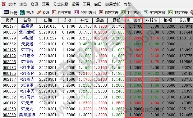 一般我們可以通過行情軟件來找,首先需要進入漲跌幅排名,點擊“現價”,使它的價格變成從小到大排列,排在前面的就是低價股。