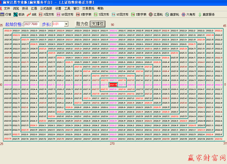 江恩數(shù)字表是江恩發(fā)明的將數(shù)字沿垂直方向排列的四方形,用來(lái)預(yù)測(cè)價(jià)格的支持位和阻力位。