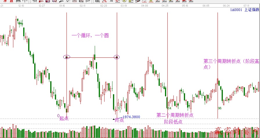 那年立秋,登上會龍山,拜訪禪師。禪師乃世外高人,與禪師一席談,令我受益匪淺。禪師的話至今記憶猶新。禪師講:"人生就是一個圓,從一個起點走下去,歷經多年的辛苦跋涉和苦苦尋覓,自以為己到達目標的所在,卻發現又回到了起點。" 我由禪師的話不由聯想到了股市,股市的上漲,回落,構成一個波段,一個循環。一個圓,圓的起點就是終點,終點就是起點。