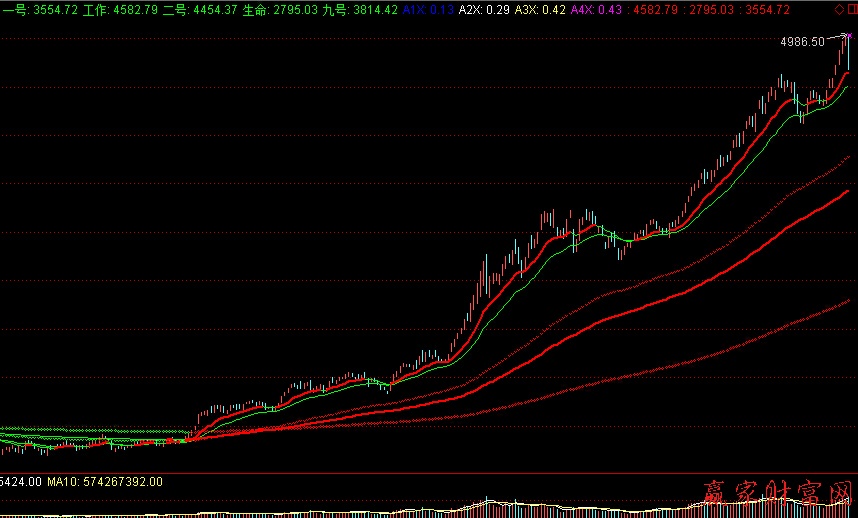 三號:=EMA(CLOSE,318)COLORGREEN;