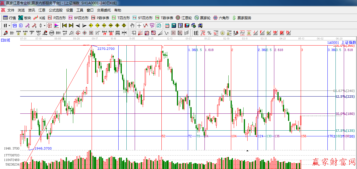 江恩看盤綜述:依據贏家江恩技術工具分析得出:時間窗口位置,指數拉出放量長陽,突破日線生命線,今日有望慣性上漲,操作上,短線適當加大倉位,星級風險提 示:看多。