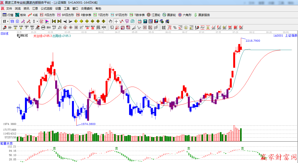 ☆依據贏家江恩系統能量買賣提示:上周一直提示大家,大盤能量較前期有背離跡象,周五指數沖高回落,能量柱出現“賣”字信號,短期謹慎為主。