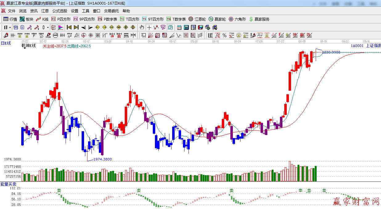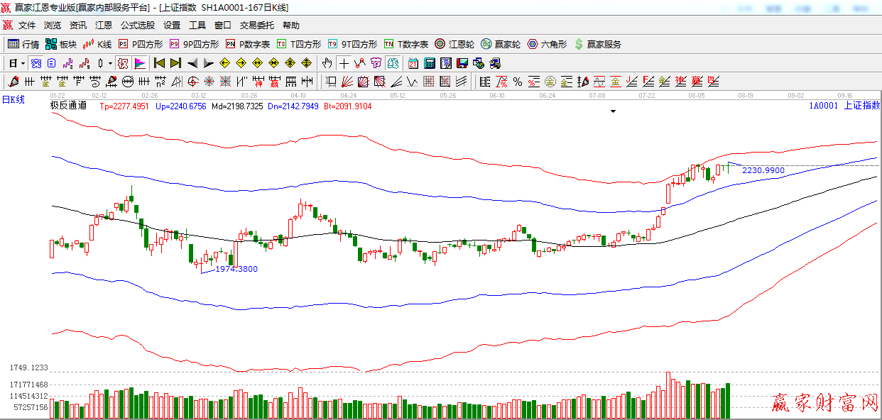 ★依據贏家江恩系統極反通道提示:指數探底回升,十字星報收,上方極反通道外軌線阻力2242點,短期有回踩藍色線需求。