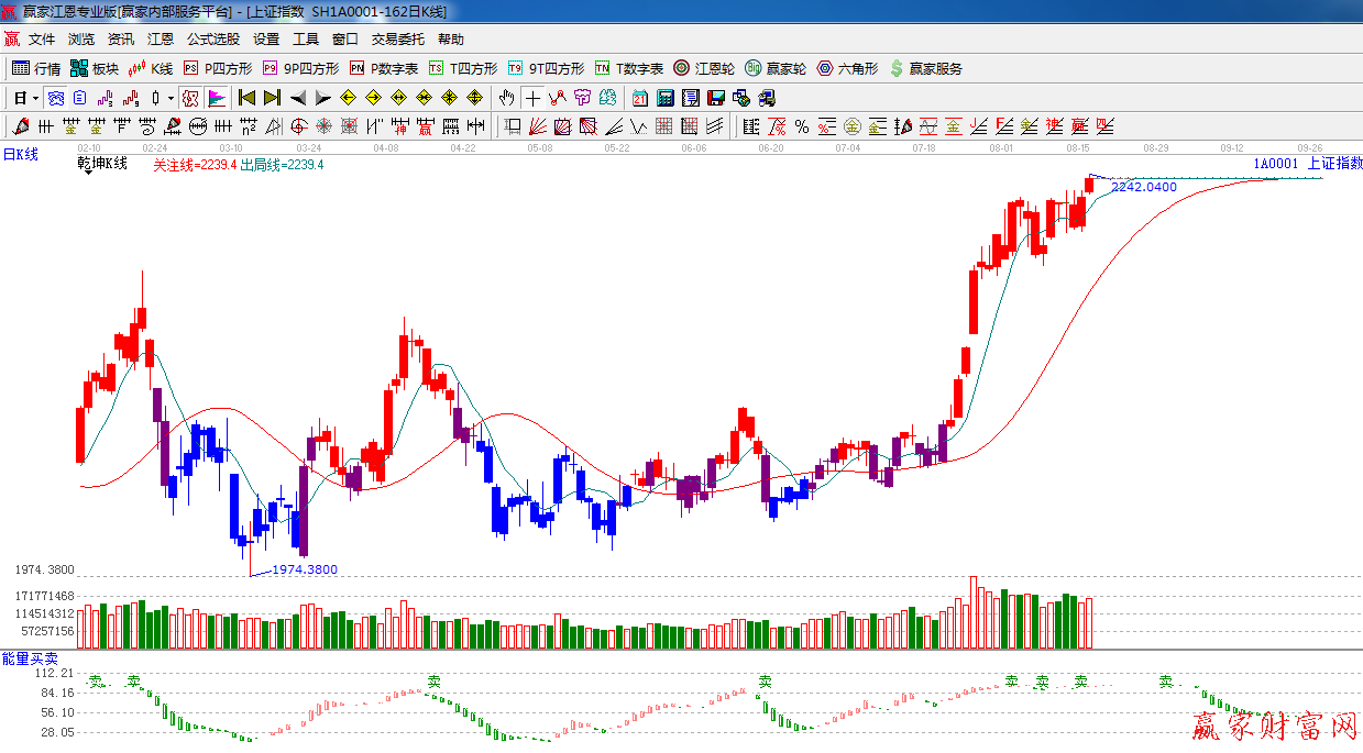 ★依據贏家江恩系統極反通道提示:創出近期新高,極反通道紅色外軌阻力是 2260附近。