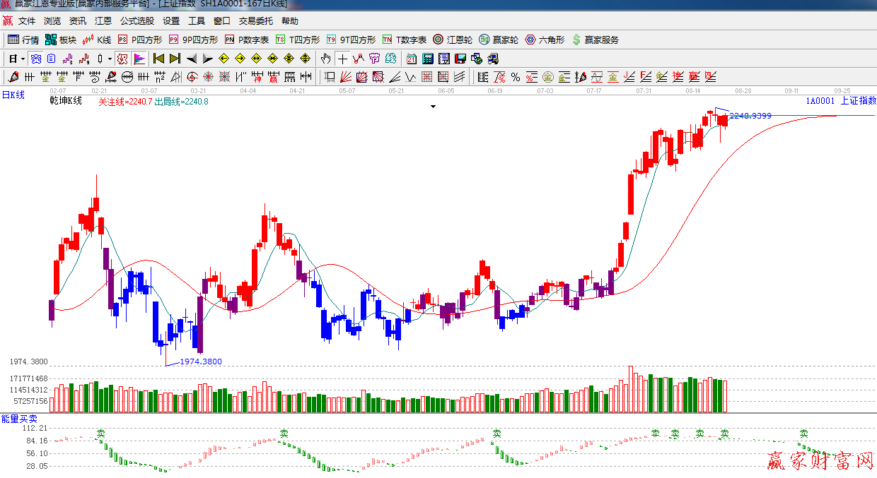 ★依據贏家江恩系統乾坤K線提示: 紅色可操作區域,盤中破位出局線,午后收回,短期趨勢謹慎看多。