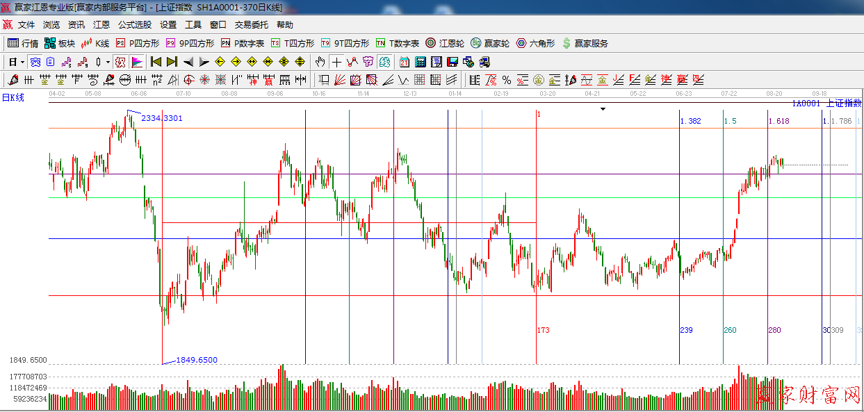 ★依據贏家江恩系統極反通道提示:外軌線之間,支撐2210點附近,短期以震蕩整理為主。