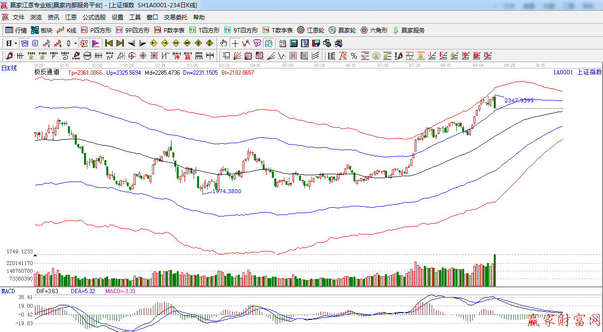 江恩看盤綜述:依據贏家江恩技術工具分析得出:周二上證創出新高后跳水,破位2300點,放量中陰線報收,預計短期沖高回落是未來的大概率走向,下方短線支撐先看江恩270度2275點,短期操作上,保持謹慎態度。