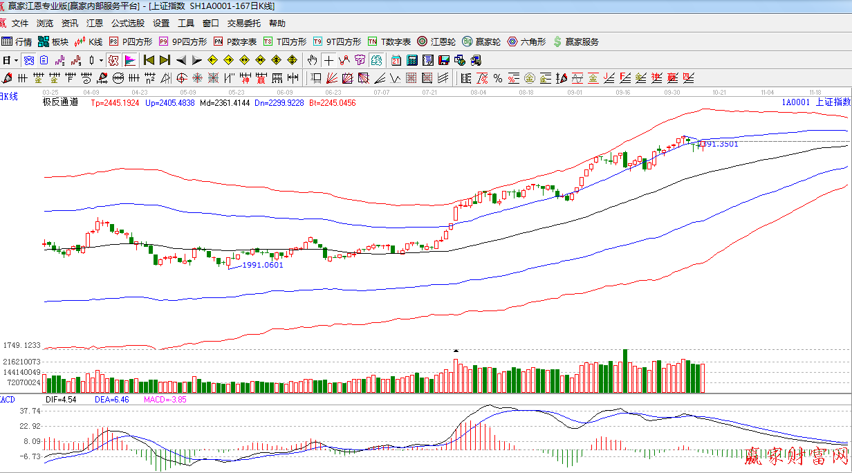 ★依據(jù)贏家江恩系統(tǒng)極反通道提示:60分生命線獲得支撐,反彈,日線藍色外軌線之下收盤,小陽線,明日繼續(xù)關注外軌線阻力。