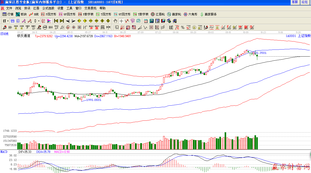 ☆依據贏家江恩系統極反通道提示:前幾日圍繞外軌線高位震蕩,今日終于迎來了爆跌,下方日線支撐生命線2290附近。