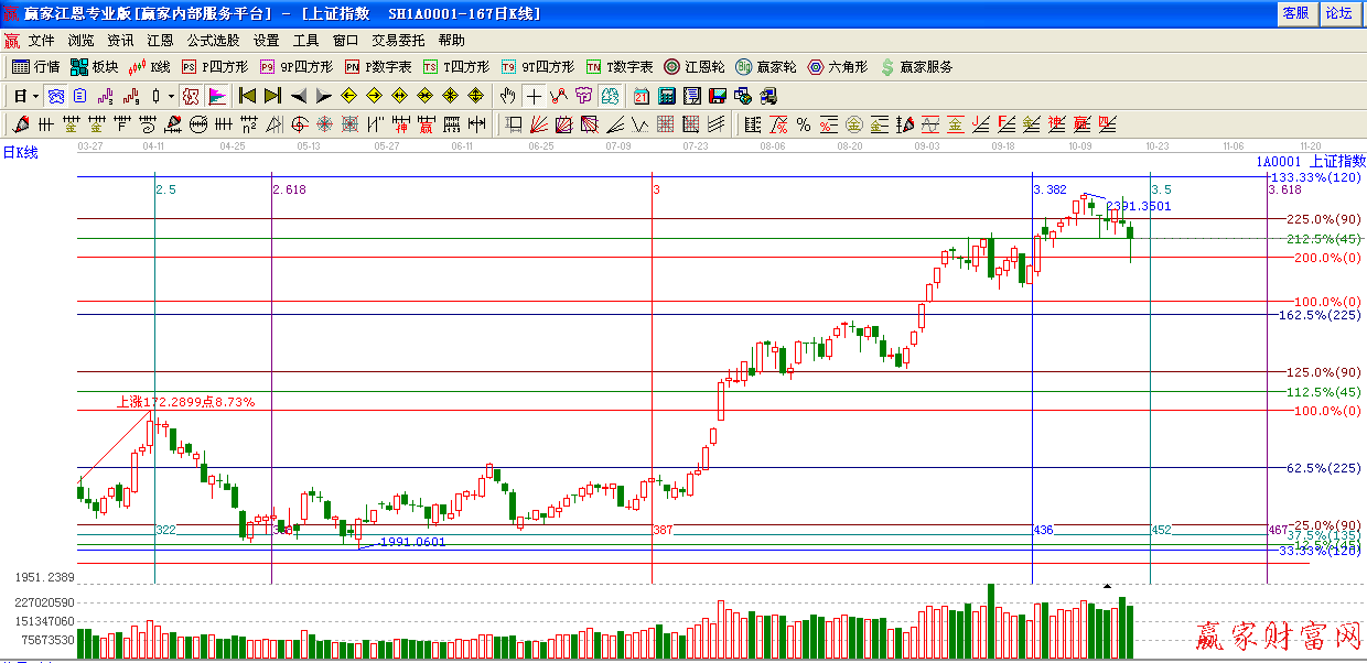 ☆依據贏家江恩系統黃金時間周期線提示:10月9日以及寒露時間節點之后,指數如期展開回落,下一時間窗口10月22日。