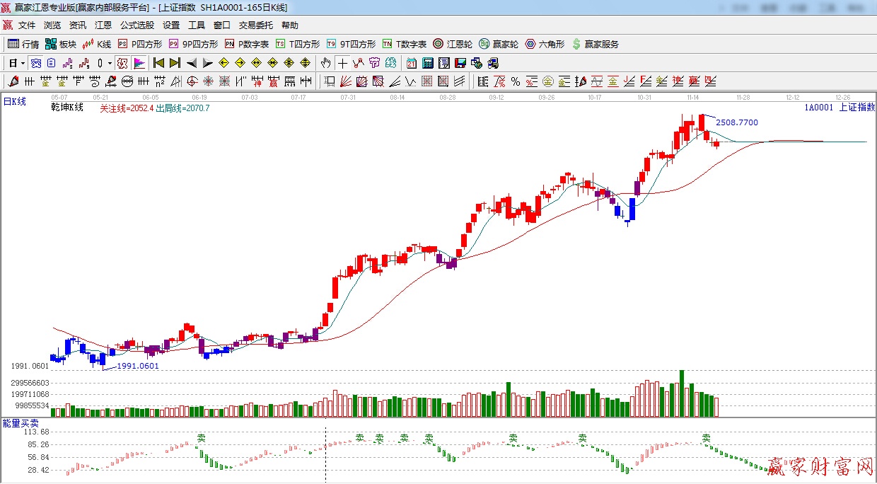 ★依據贏家江恩系統乾坤K線提示:紅色區域,短線出局線之下,短線看空。