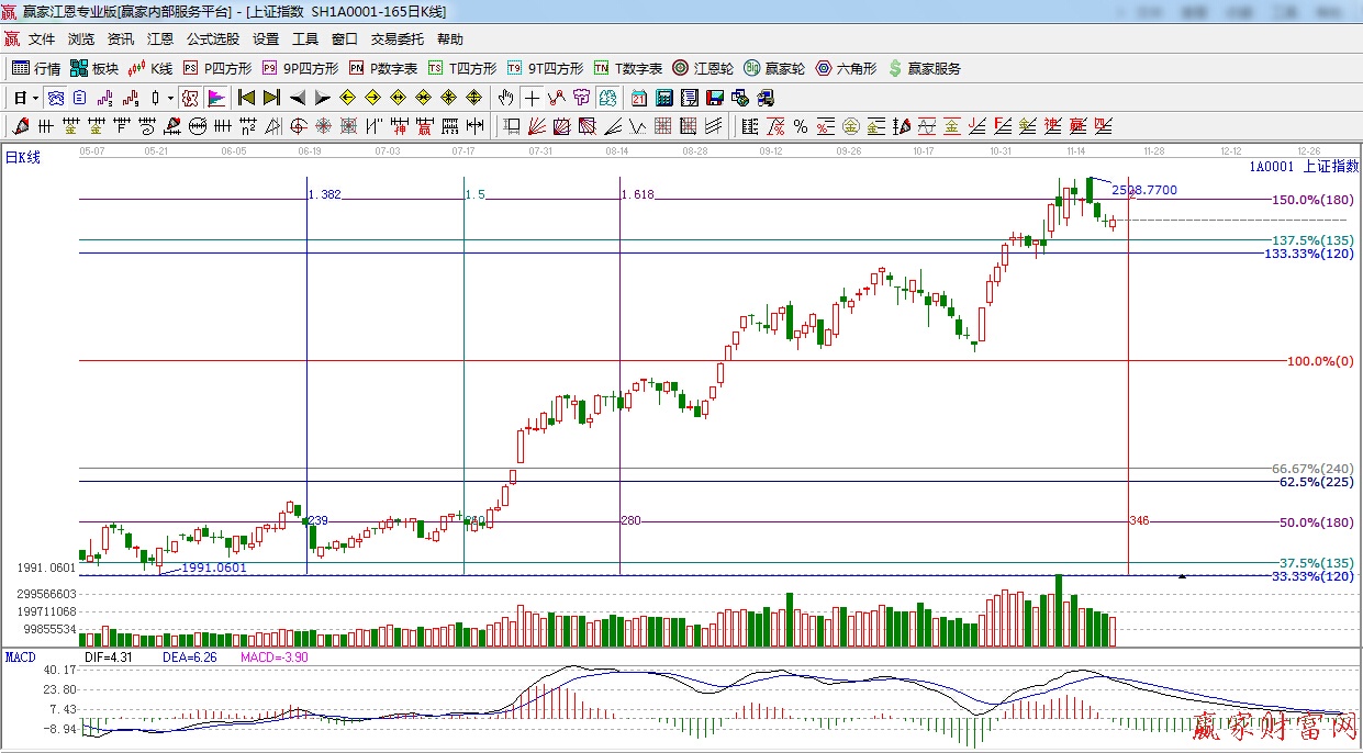 ☆依據贏家江恩系統黃金時間周期線提示:重點關注時間窗口是11月24日。