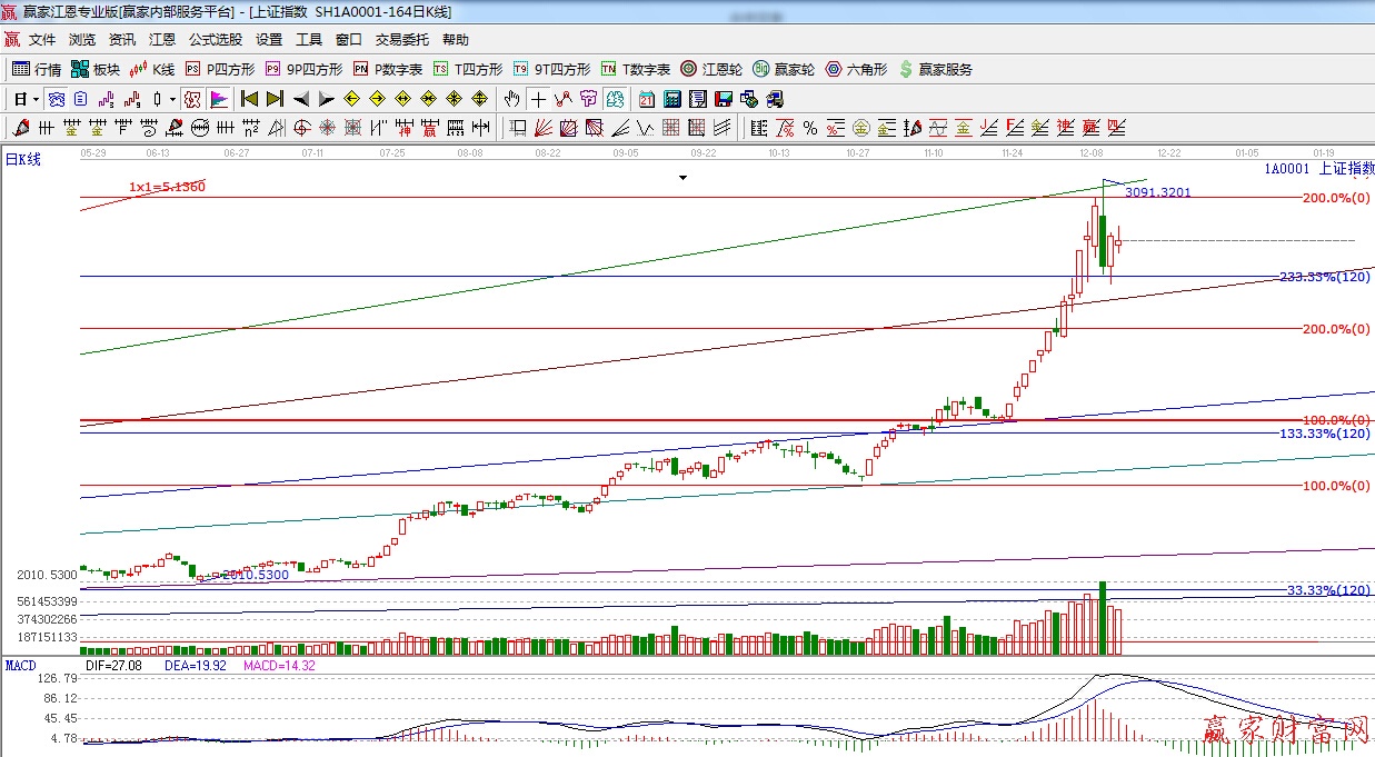 江恩看盤綜述:依據贏家江恩技術工具分析得出:周四由于受金融權重股的拖累,全天震蕩收星,量能持續萎縮,預計短期市場或以震蕩的方式來解決指數的回調,下方強支撐2830—2800區間,對于牛市起步階段,回調恰好是給我們低吸的機會,操作上,繼續留意漲幅落后的低估藍籌,如特高壓、環保、電子信息等。