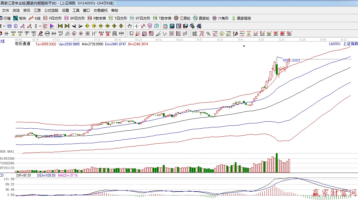 ★依據贏家江恩系統極反通道提示:指數沿紅色外軌線,繼續震蕩走高,依據規則外軌線不破,整體看多趨勢不變。
