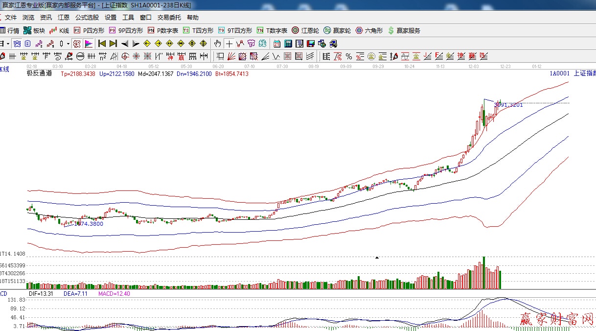 ★依據贏家江恩系統(tǒng)極反通道提示:指數沿紅色外軌線,繼續(xù)震蕩走高,依據規(guī)則外軌線不破,整體看多趨勢不變。