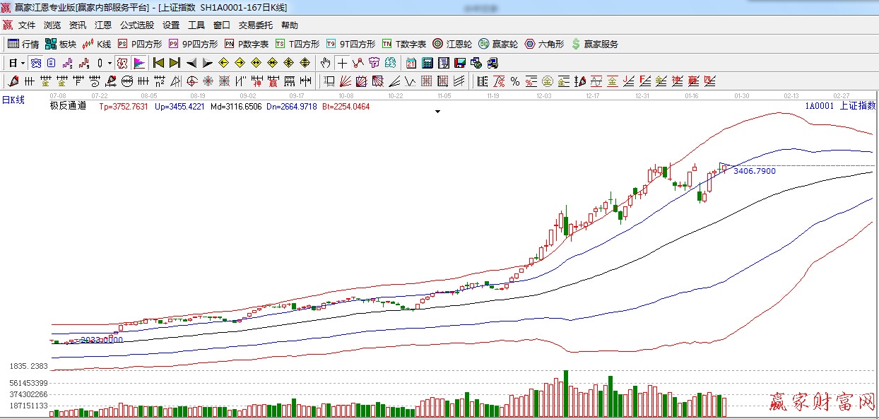 極反通道提示:滬指繼續(xù)圍繞極反通道藍(lán)色外軌線震蕩上行,外軌線支撐3361點(diǎn),此位置不破,繼續(xù)看多。