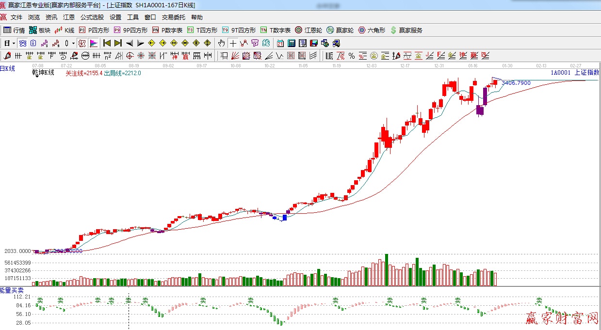 ★依據(jù)贏家江恩理論系統(tǒng)乾坤K線提示:1月21日由紫色k線轉(zhuǎn)入紅色區(qū)域,看多。