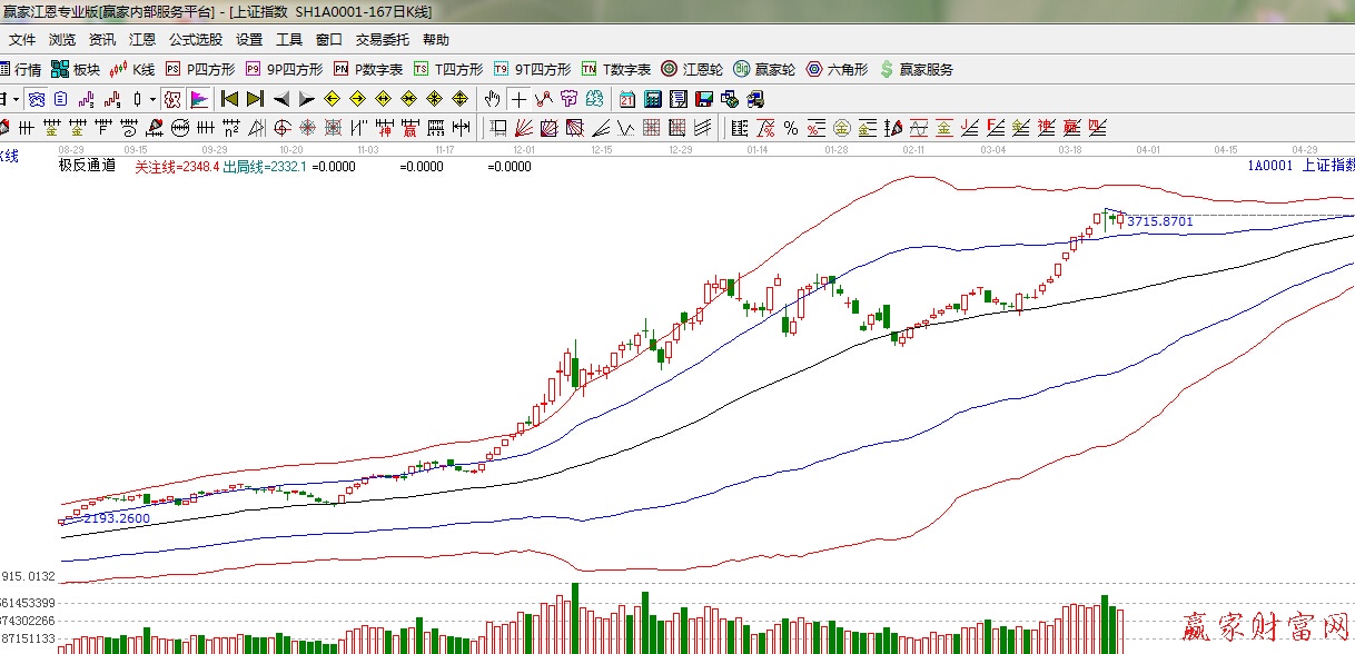 江恩看盤綜述:依據贏家江恩技術工具分析得出:今日早盤再次上攻3700,隨后震蕩小幅回落,上攻動能稍顯乏力。創業板指全天大幅下挫近4%,盤面上,醫藥、白酒等防御性板塊都在大盤震蕩過程中獲得了不錯的補漲機會,這也從一個側面顯示了當前市場存在的調整壓力,雖說大的趨勢依然向上,但短期的調整也需謹慎對待。操作上,關注滯漲品種以及年報超預期的個股。