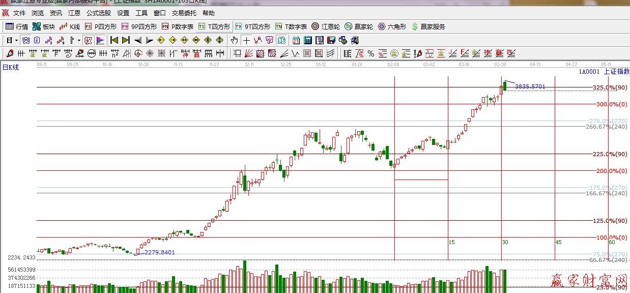 江恩理論系統黃金時間周期線提示:昨日3月30日是前期提到的時間窗口,今日指數沖高回落,短期謹慎為主。