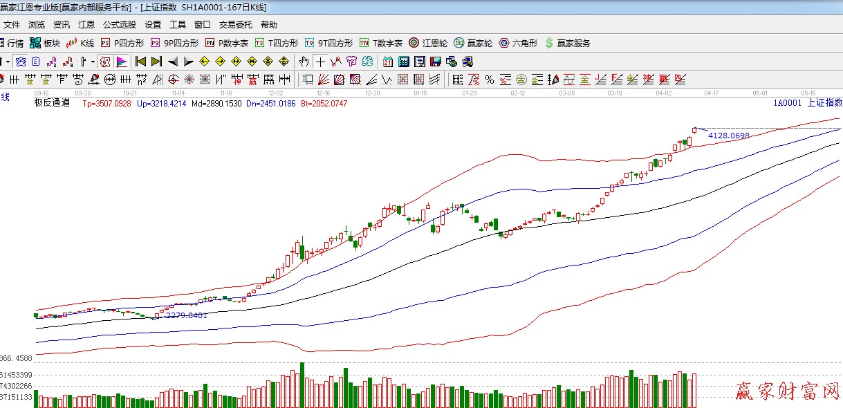 極反通道提示:極反通道紅色外軌線支撐上方,繼續(xù)走強(qiáng),強(qiáng)勢格局延續(xù)。