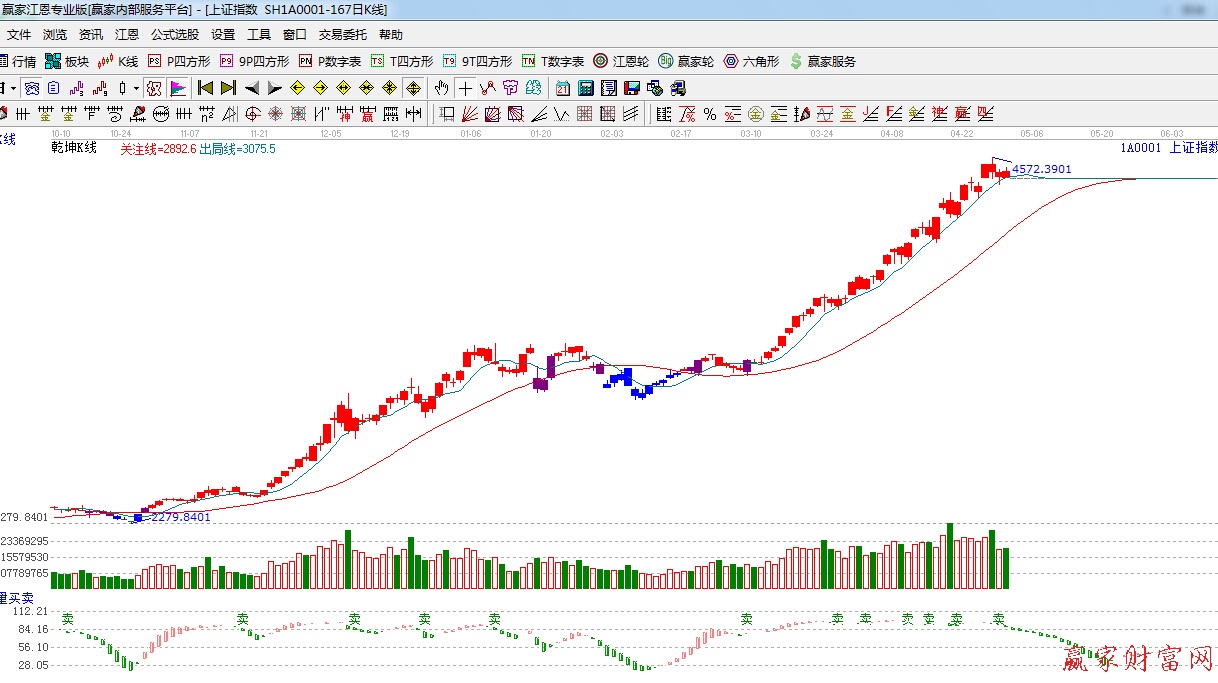 ☆依據贏家江恩理論系統能量買賣提示:有“賣”字出現,指標鈍化,謹慎看多。