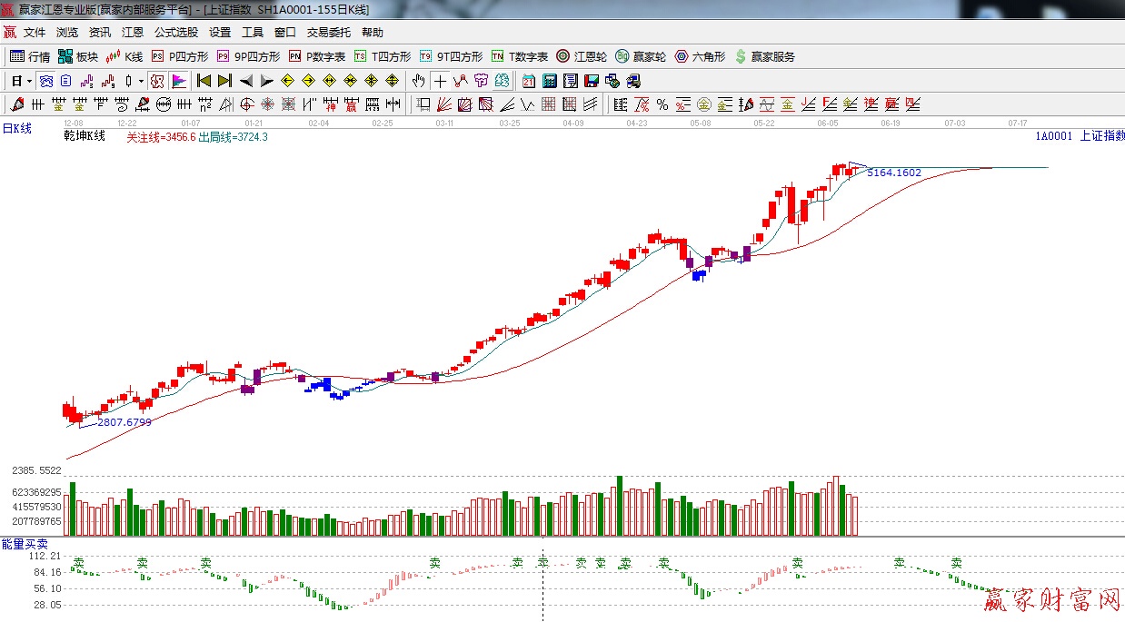 ★依據(jù)贏家江恩理論系統(tǒng)能量買賣提示:紅色看多能量柱,較前期有背離,謹(jǐn)慎看多。