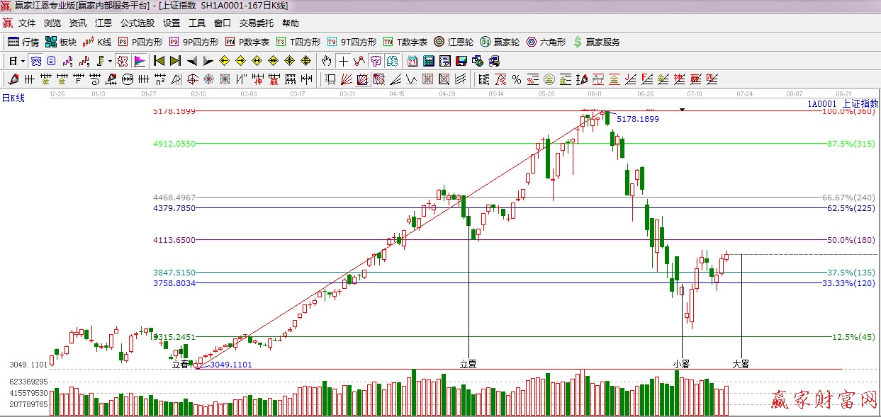 ☆依據(jù)贏家江恩理論系統(tǒng)輪中輪變盤點(diǎn)提示:下一時(shí)間窗口是大暑 7月23日。