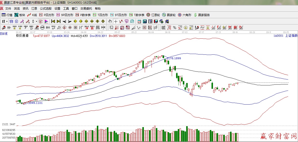 ☆依據(jù)贏家江恩理論系統(tǒng)極反通道提示:日線頻臨生命線阻力,生命線價格4050點。