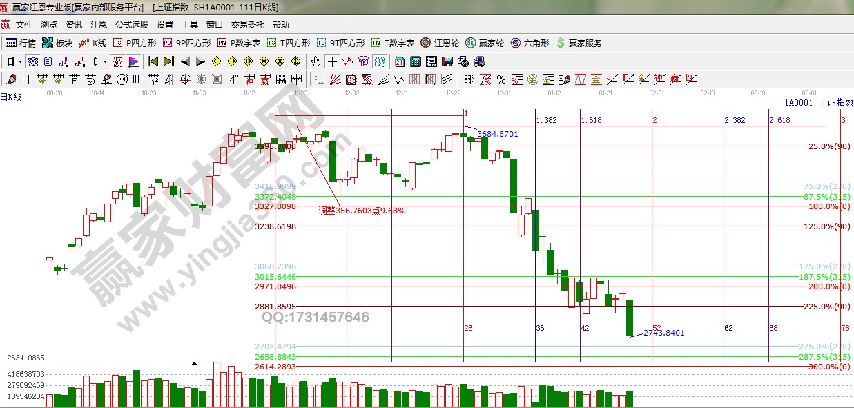 ☆  依據贏家江恩理論系統(tǒng)江恩波段百分比線提示:明日下方支撐關注2703,2658點。阻力位關注2844點。