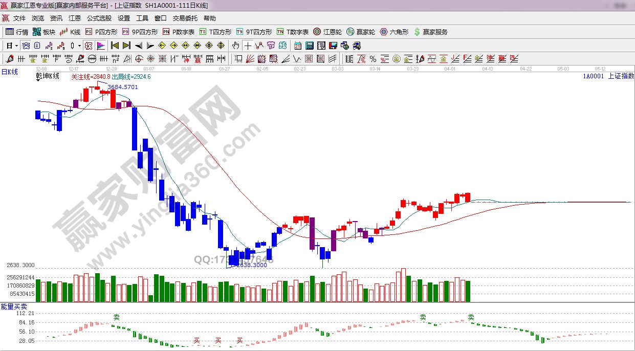 ☆  依據贏家江恩理論系統能量買賣提示:紅色能量柱縮短,并有“賣”字出現適當謹慎。