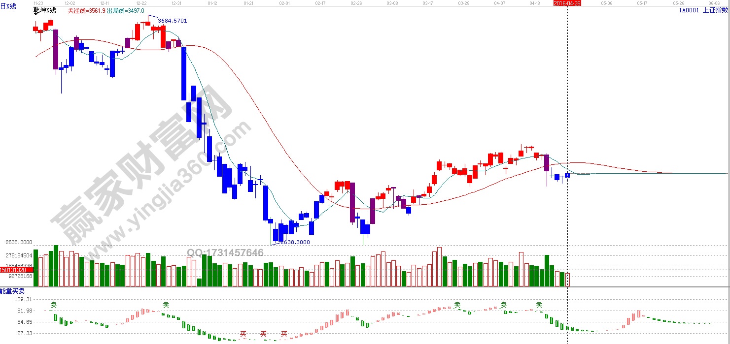 ☆ 依據(jù)贏家江恩理論系統(tǒng)能量買賣提示:“賣”字出現(xiàn),綠色看空能量柱加長(zhǎng),看空。