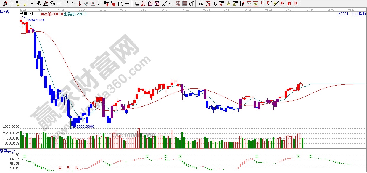 ★依據贏家江恩理論系統乾坤K線提示:紅色k線,多頭區域,出局線之上,依據規則此線不破,短線將繼續看多,破位短線空。