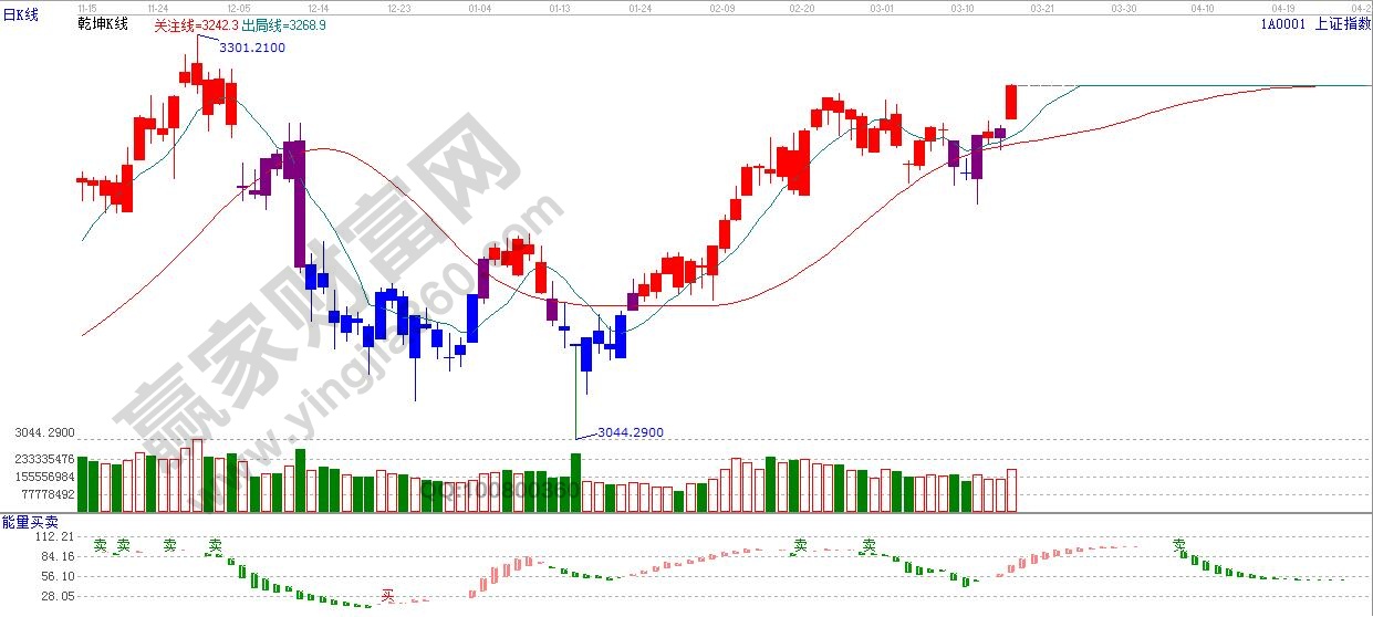 ★依據贏家江恩理論系統極反通道提示:大盤高開高走,滬指直逼日線外軌線,點位3285點,趨勢延續多頭