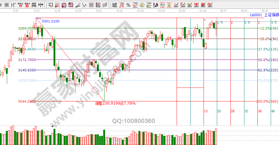 ☆依據贏家江恩理論系統黃金時間周期線提示:今日是一直提到的4月11窗口,股指跌開高走,量能放大,依據規則,看多。