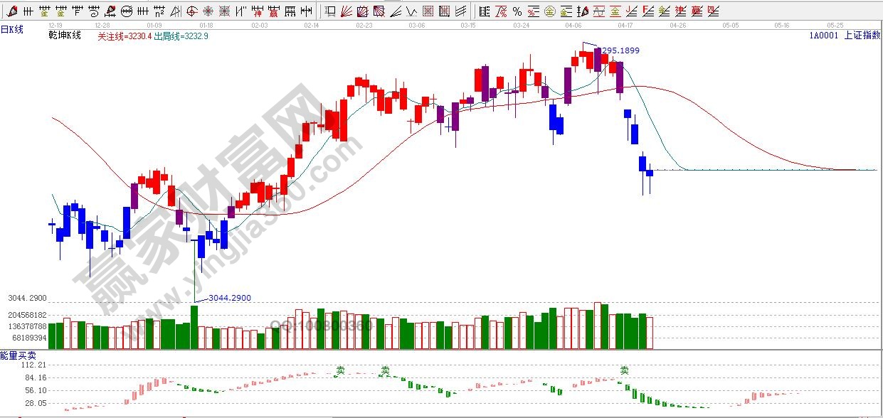 ☆依據(jù)贏家江恩理論系統(tǒng)乾坤K線提示:紅色關(guān)注線之下,藍(lán)色休息區(qū)。依據(jù)規(guī)則:控制倉位,休息為主。