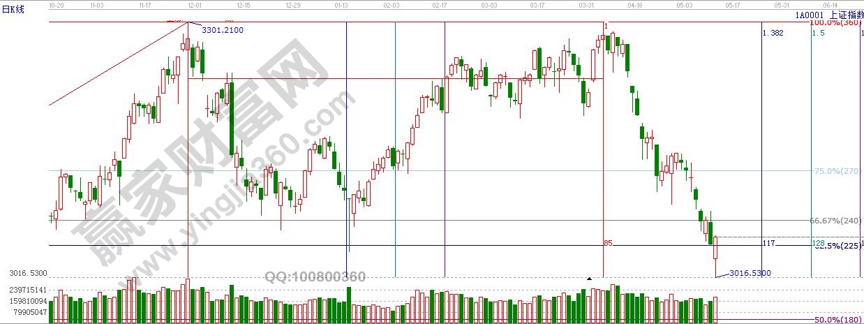 ☆依據贏家江恩理論系統極反通道提示:滬指再創新低,破位藍色線,依據規則,物極必反,短期整理后應有超跌反彈機會,倉位控制在3-5成