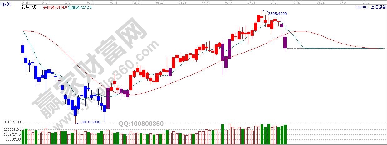 ★依據贏家江恩理論系統乾坤K線提示:破位紅色關注線,出現紫色k線,保持謹慎。