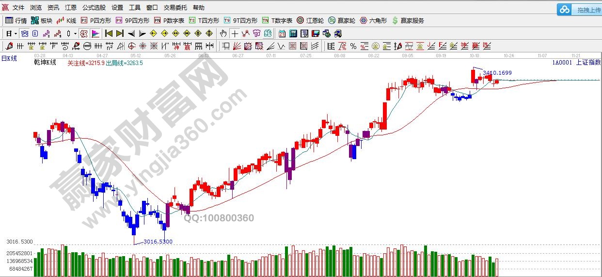 ★依據贏家江恩理論系統乾坤K線提示:紫色k線,轉入紅色線,依據規則,破位綠色短線出局線,短線謹慎。紅色關注線之上,波段依舊看多。