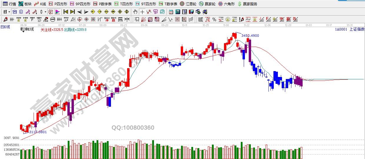 ☆依據贏家江恩理論系統乾坤K線提示:收復短線出局線,但依然在紅色關注線之下,依據規則,紅色關注線之下,耐心等待。