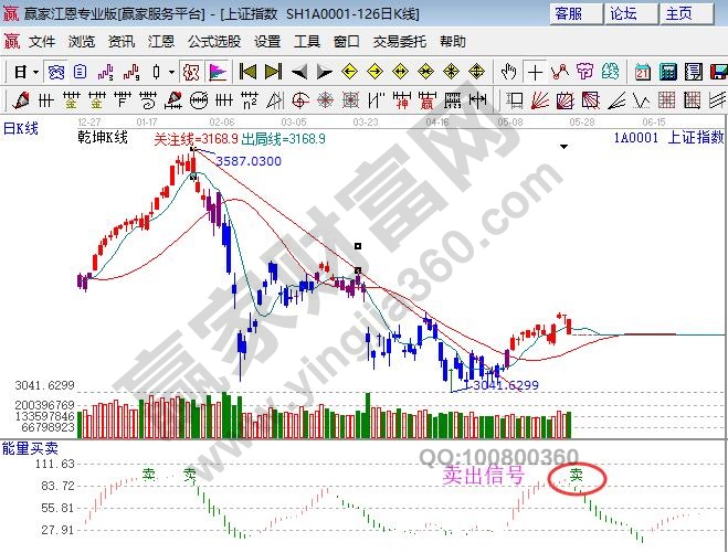 ☆依據(jù)贏家江恩理論系統(tǒng)能量買賣提示:多空能量發(fā)出賣出信號(hào),看空。